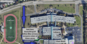 • Parents can then drive to the audition site. Park, then come into the holding area to sign your student out – we want to ensure they are being picked up.